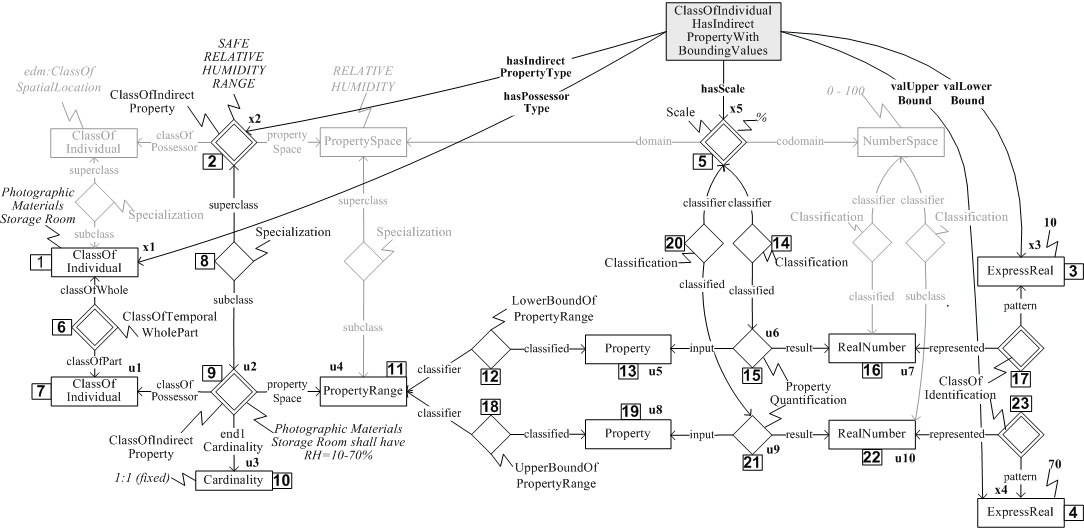 Relationship (diamond nodes in the diagram below)Eg here’s how to represent the allowed range of a parameter of some entity (tag or equipment):
