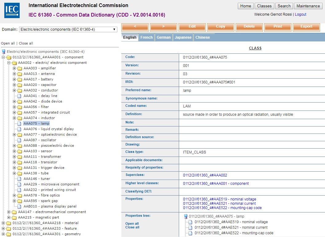 Although it uses same/similar data model as IEC CDD, it does not use any IEC data, not even IEC Units of Measure.
